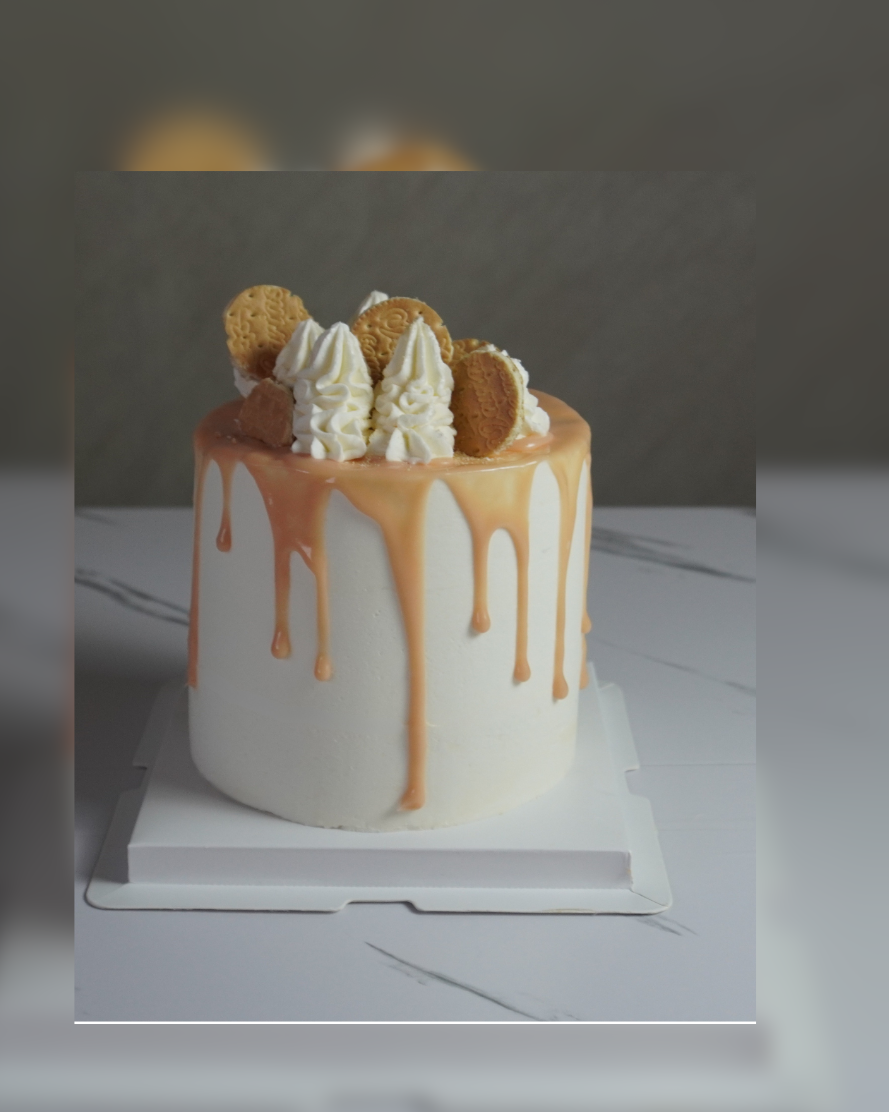 A tall 5" cake, small in size but big in cookies & cream flavor, perfect for about 6 servings.
