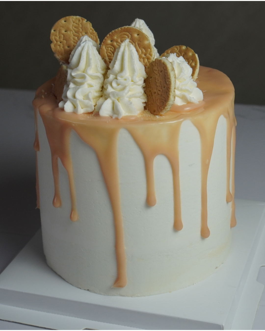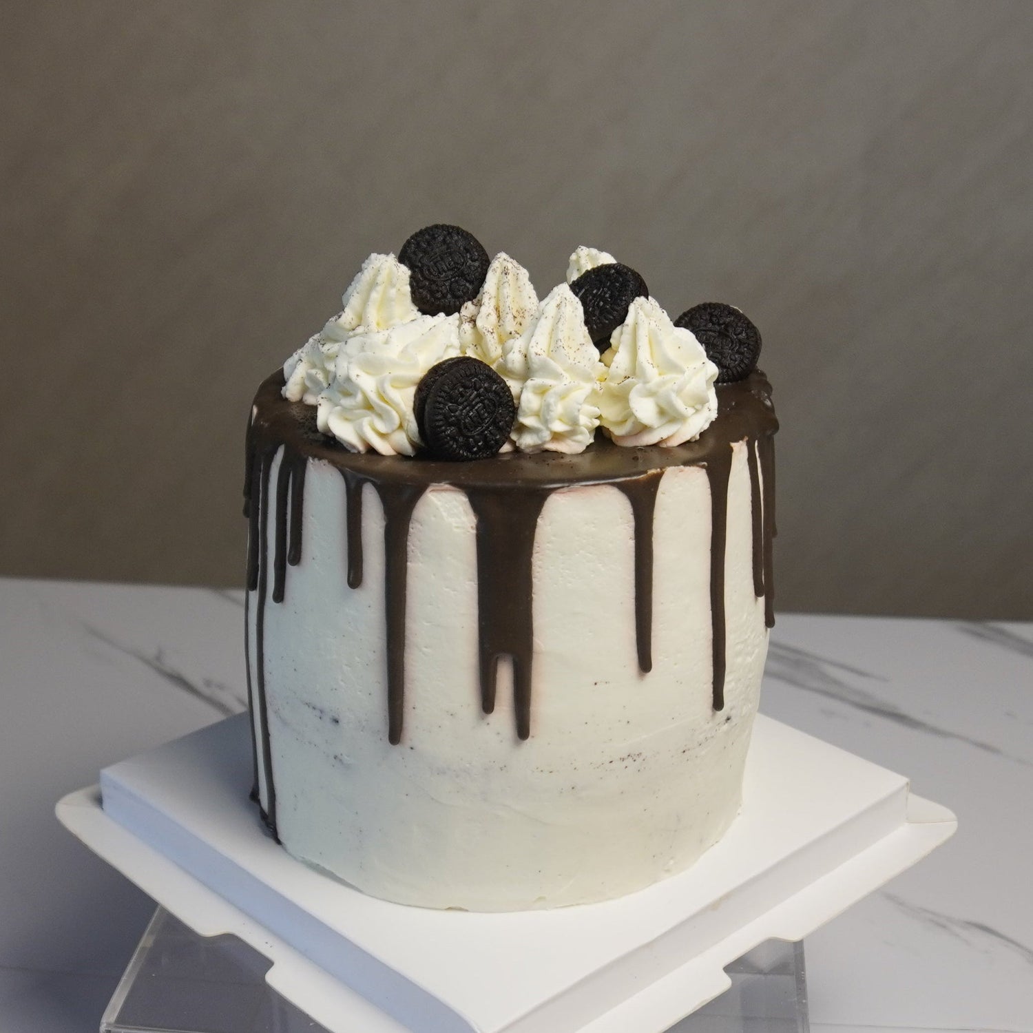 A tall 5" cake, small in size but big in cookies & cream flavor, perfect for about 6 servings.